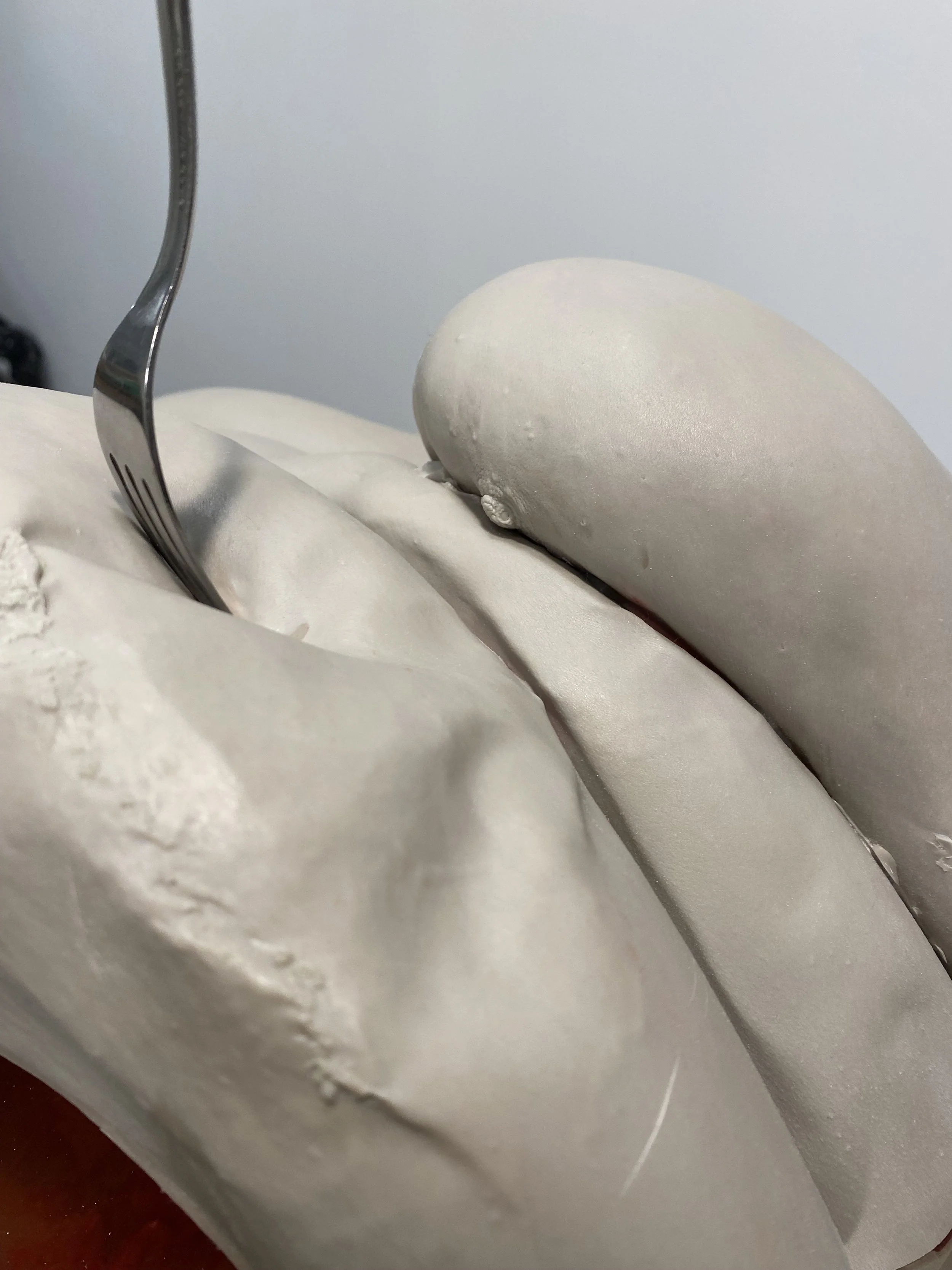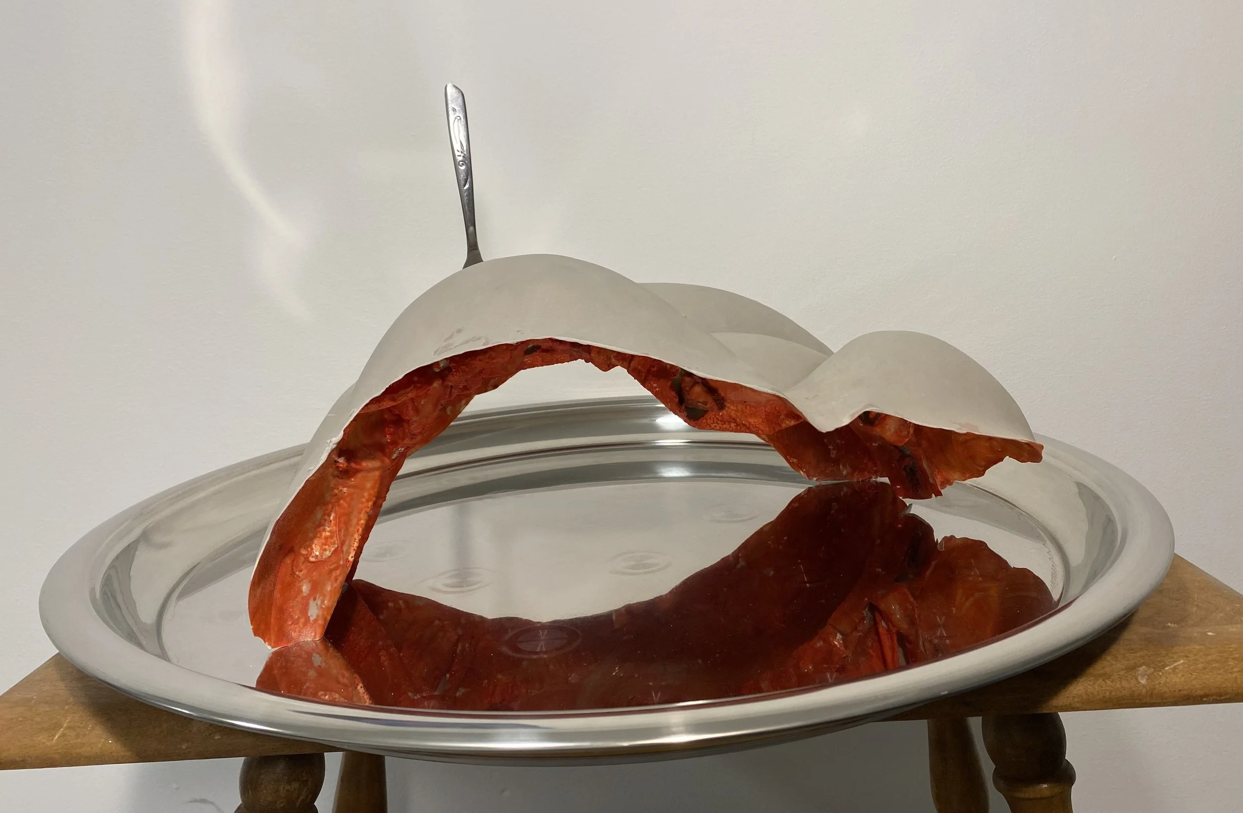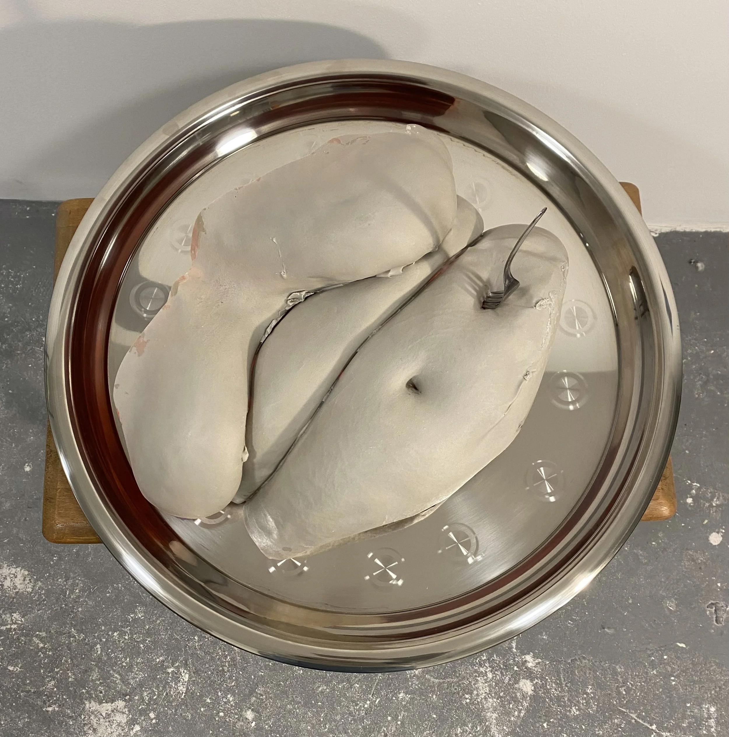 , 2023, resin, acrylic paint, metal platter, fork